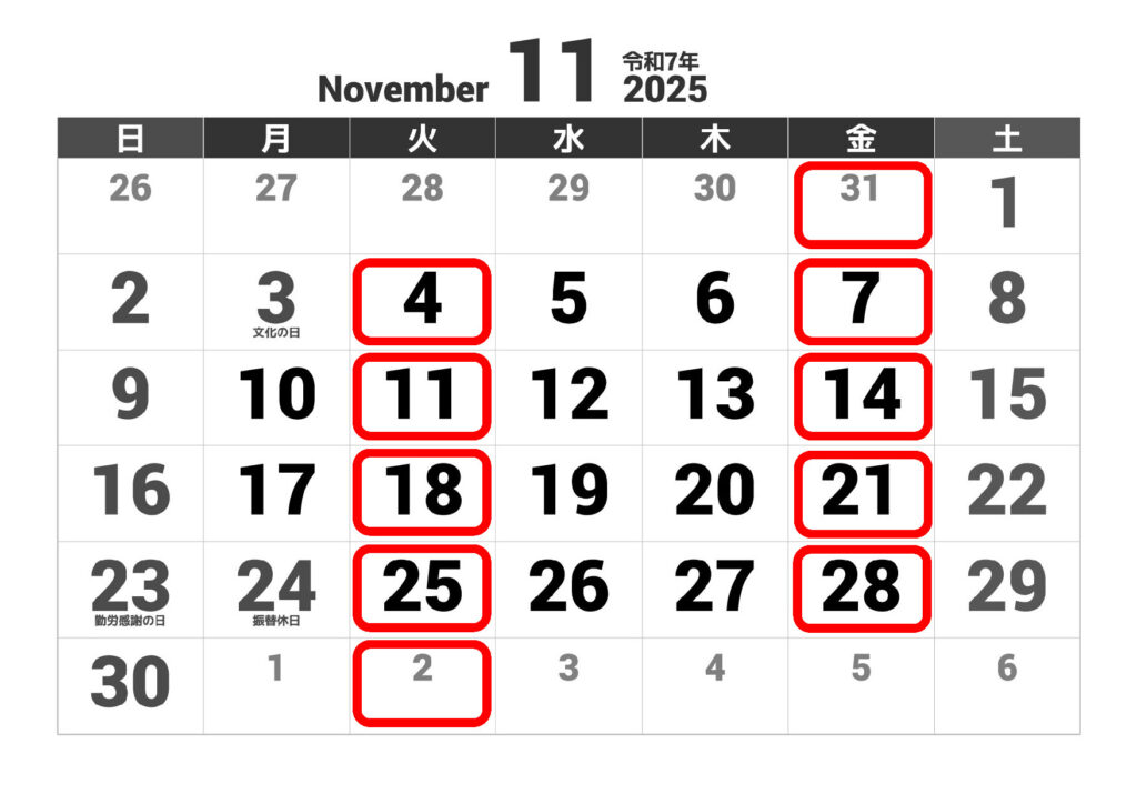 3日・文化の日(月曜日)と、24日勤労感謝の日・振替(月曜日)は通常診療いたします。
