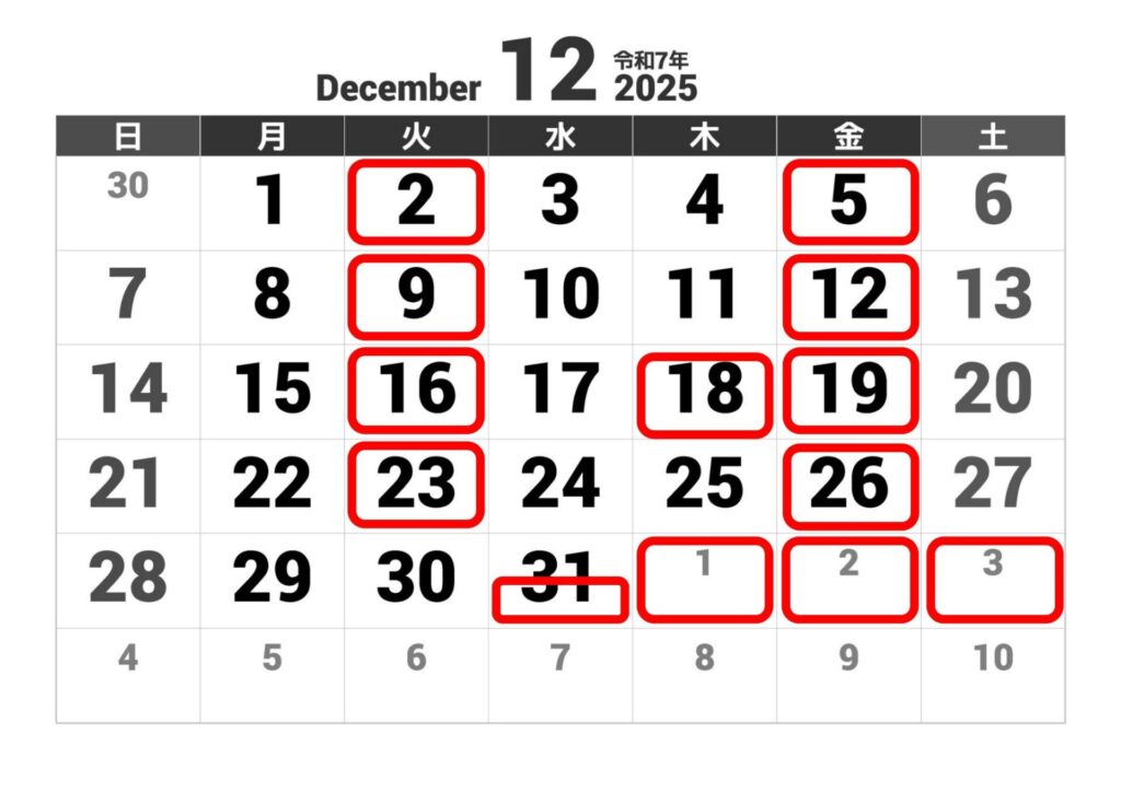 年末は、30日(火)は通常診療、31日(水)は午前中のみの診療となります。